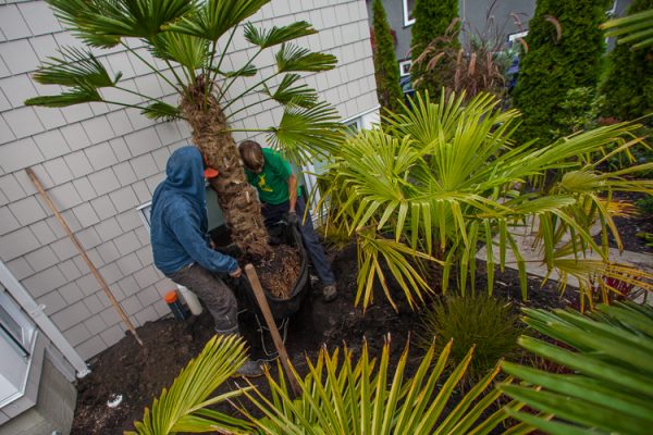 For example, three 25 foot well-established pine trees were bought and placed on the property via a large crane. Large fully-formed palm trees for planting were outsourced from the US, and almost 200 shrubs and other trees were purchased from local nurseries within a 100 km radius. We created innovative planting designs using agaves, evergreen magnolias, hostas, eucalyptus, New Zealand flax, and beautiful palm trees surrounding the magnificent in-ground pool.