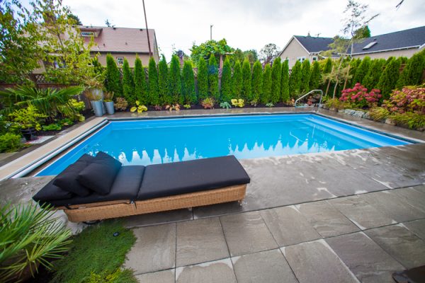 Our journeyman carpenter, expert landscaping crew, contractor, and pool experts designed and installed the pool seamlessly. It was complete with a hidden retractable roof and solar heating panel to save on electricity costs.
