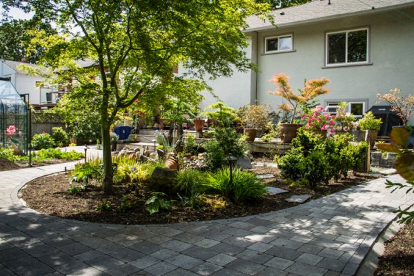 Our irrigation expert designed and installed an automatic sprinkler system to deliver water to all of the new, lush green areas as efficiently as possible. This property with wandering pathways is still a work in progress as new plants find their way into the design to fill the space and add to the colourful West Coast property.